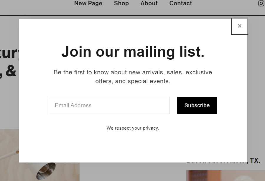 This is essential. Setting up a promotional pop-up benefits you by helping you get some type of buy-in from your visitors. Follow these steps to set up a pop-up on your Squarespace site:
